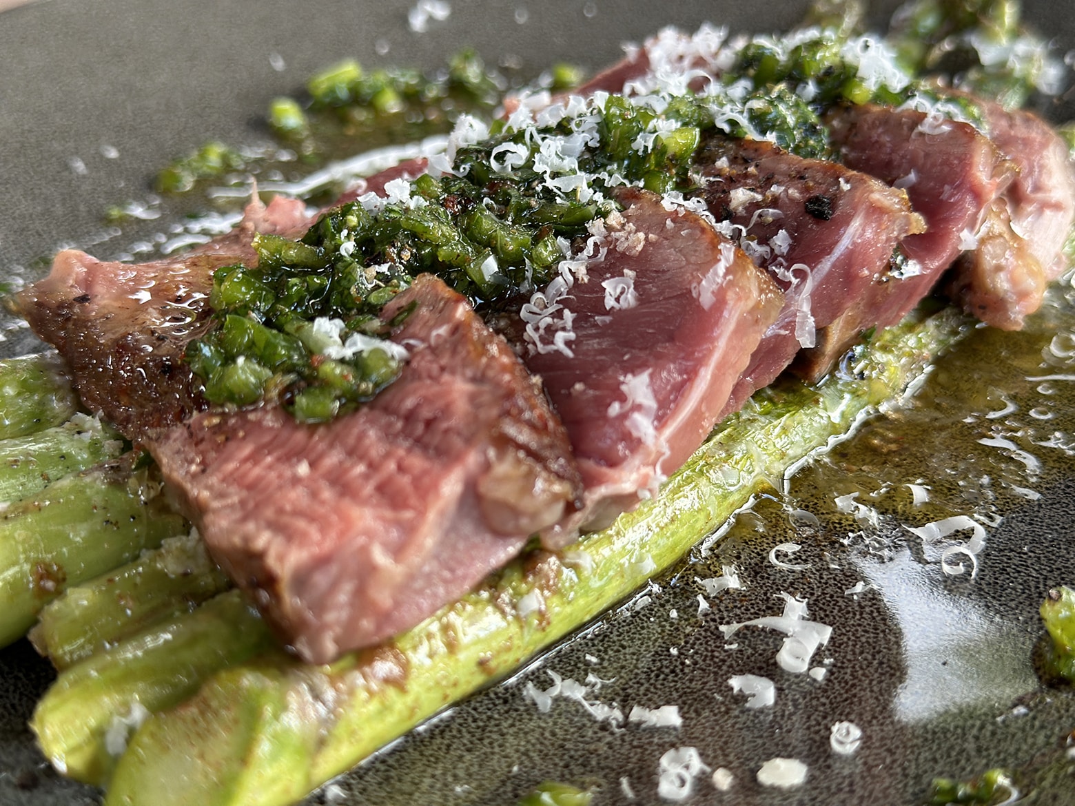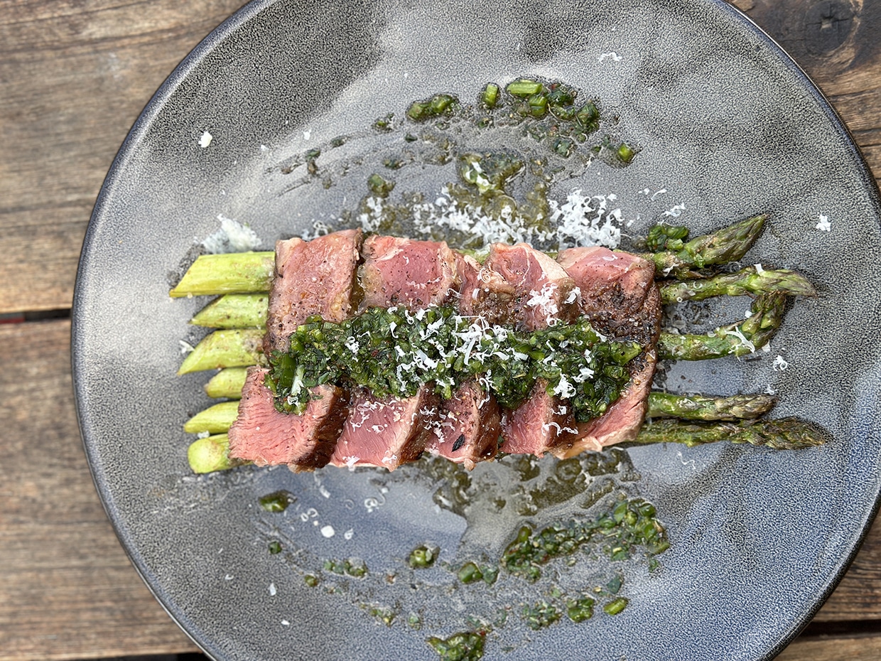 In diesem Originalrezept von dem BBQ Experten Tom Heinzle aus Österreich zaubert Tom ein saftig gegrilltes Steak, begleitet von zartem, gegrilltem grünen Spargel, dessen leicht herbe Noten den Geschmack des Fleisches aufs feinste ergänzen. Als krönender Abschluss ein Hauch von gesmokter Bärlauchbutter. So außergewöhnlich, aber dennoch einfach zubereitet.