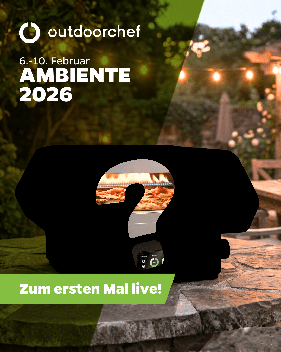 Auf der Ambiente 2026 zeigen wir bei uns am Outdoorchef-Stand, was Outdoor-Cooking in der kommenden Saison ausmacht – hochwertige Materialien, maximale Modularität und Produkte, die im Alltag genauso überzeugen wie im Showroom. Mit dabei: eine Weltpremiere, die du das erste mal live am Stand erleben kannst – QUBE. Dazu präsentieren wir unsere neuen HEAT Outdoorküchenmodule, die Grenzen hinter sich lassen, sowie unseren PRISMO Pizzaofen für easy Pizzeria-Vibes im eigenen Garten.
