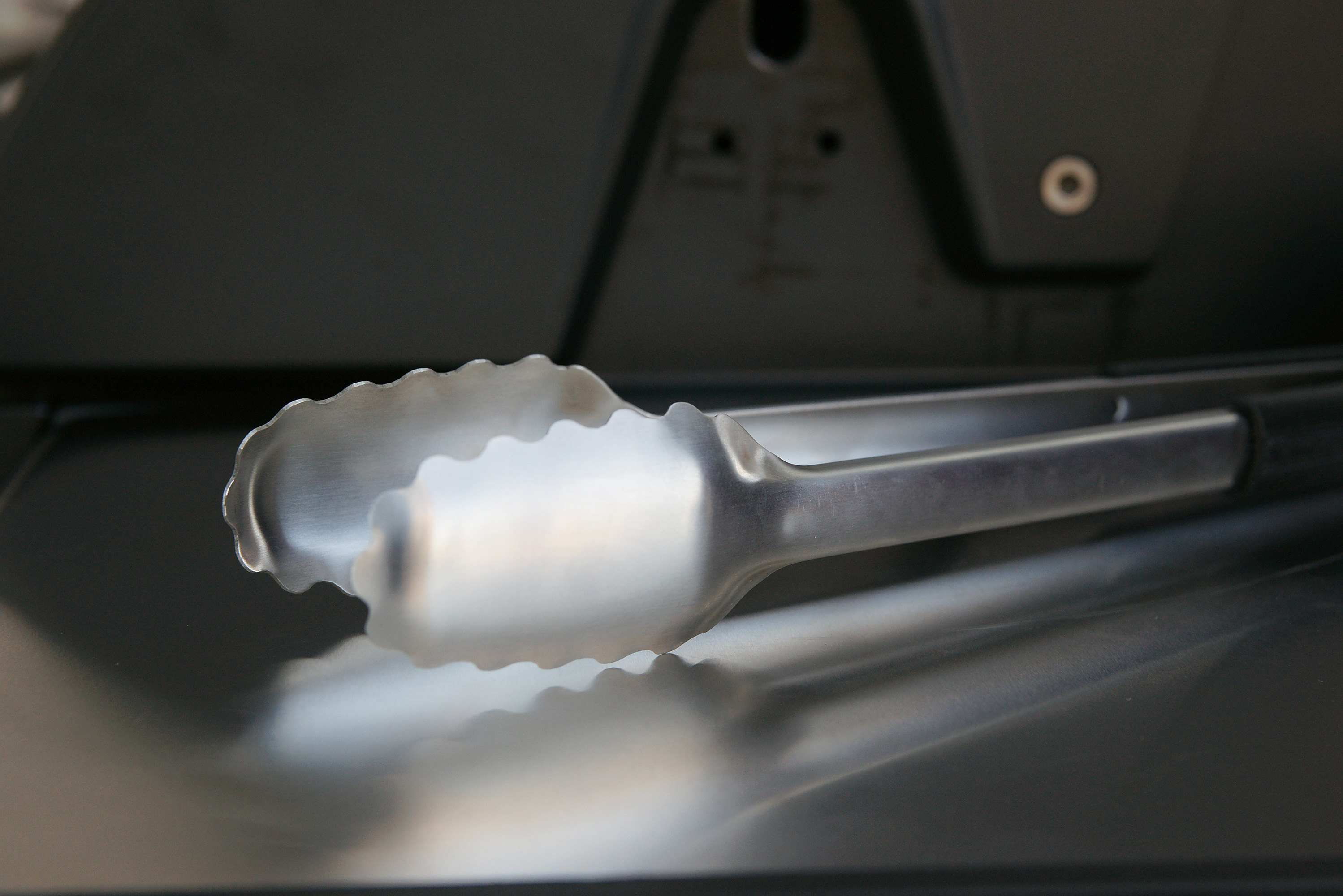 Gezackter Zangenkopf für sicheres Greifen des Grillguts