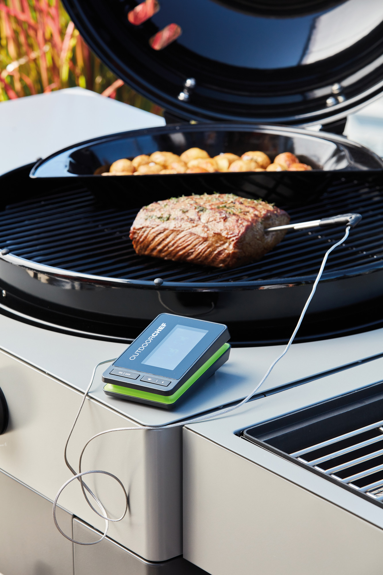 Zuverlässig, einfach zu bedienen und besonders präzise: Der Gourmet Check Pro misst spielend einfach die wichtigsten Temperaturen im Grill und lässt sich per Bluetooth ganz leicht mit dem Smartphone verbinden! Der Temperaturfühler ist mit 2 separaten Messsonden ausgestattet und misst gleichzeitig die Kerntemperatur des Grillguts sowie die exakte Garraumtemperatur. Mit dem zweiten Temperaturfühler kann eine weitere Kerntemperatur überwacht werden. Behalten sie den Garprozeß kinderleicht im Blick und stellen sich individuelle Timer- und Alarmfunktionen. Über das übersichtliche und benutzerfreundliche Display lassen sich alle wichtigen Daten mit einem Blick einstellen und ablesen. Nach der Grillsession können die wasserdichten Messfühler in der Spülmaschine gereinigt werden.