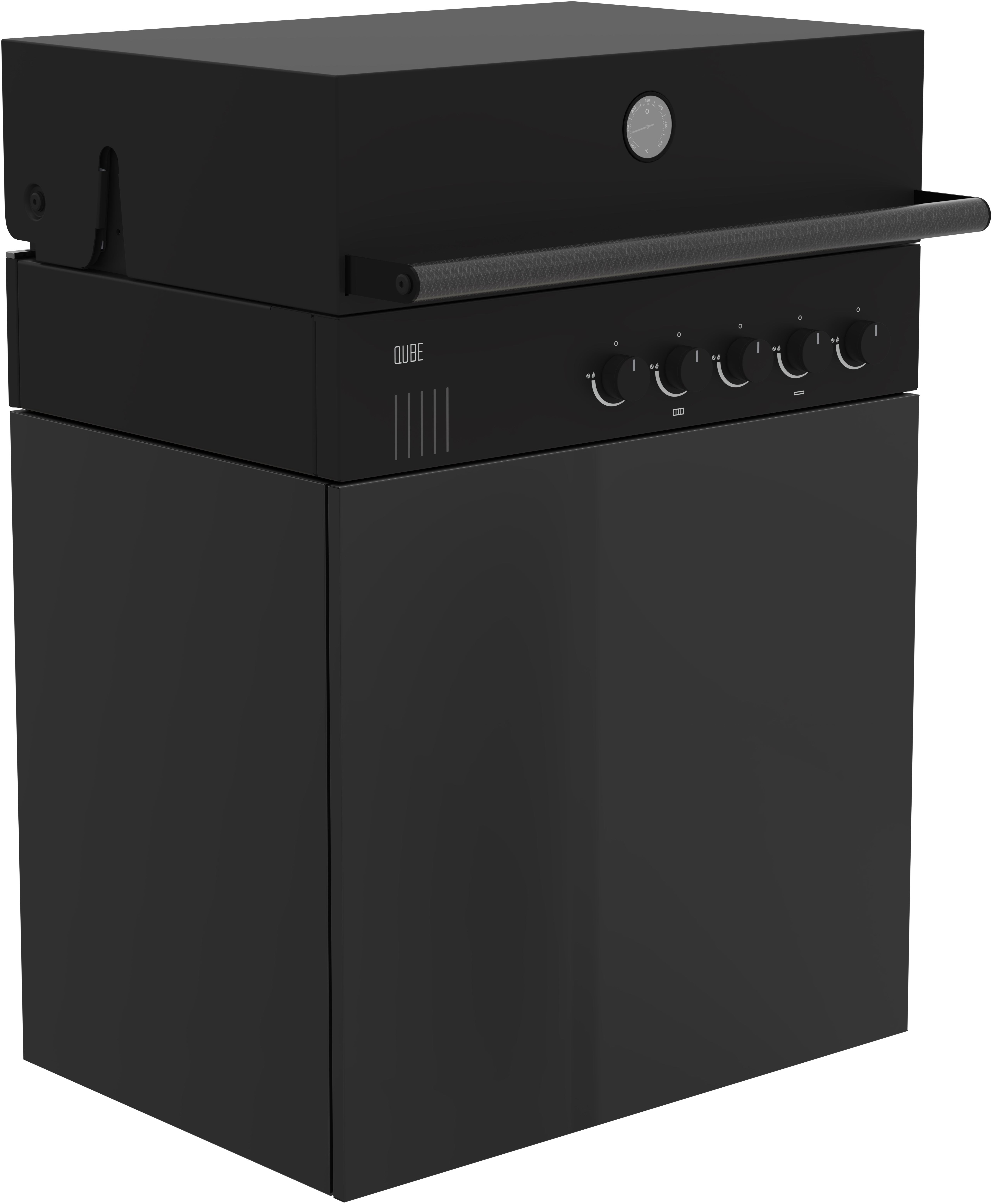 - Bestehend aus QUBE X-415 RB Einbaugrill und einem von 5 verschiedenen BBQ Unterschränken aus Edelstahl mit Pulverbeschichtung (RAL 9005 Black, RAL 3032 Red, RAL 7043 Darkgrey, RAL 9001 Creme, RAL 7006 Taupe)