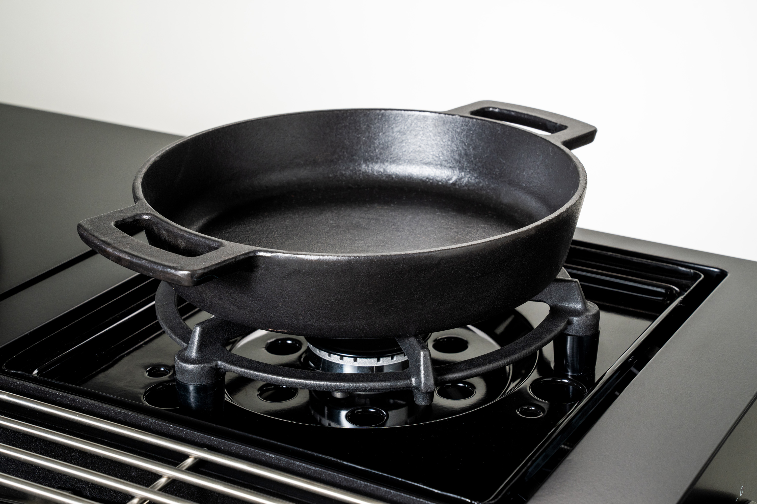 • Massive Gusseisenpfanne mit hervorragenden Hitzeeigenschaften