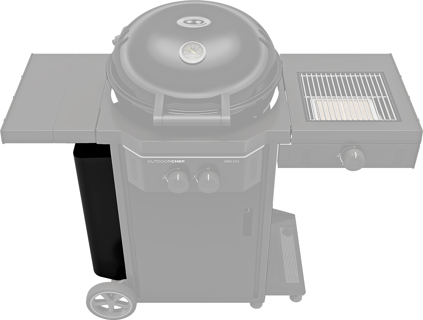 Die Erweiterung für die Kugel Grillstation Davos lässt die Gasflasche einfach hinter einer Abdeckung verschwinden. Die Blende aus pulverbeschichtetem Stahl wird auf der linken Seite am Untergestell befestigt und bietet mit Fixierungsbügel und Schutzpads gegen Kratzer optimalen Halt für Gasflaschen bis 11 kg.