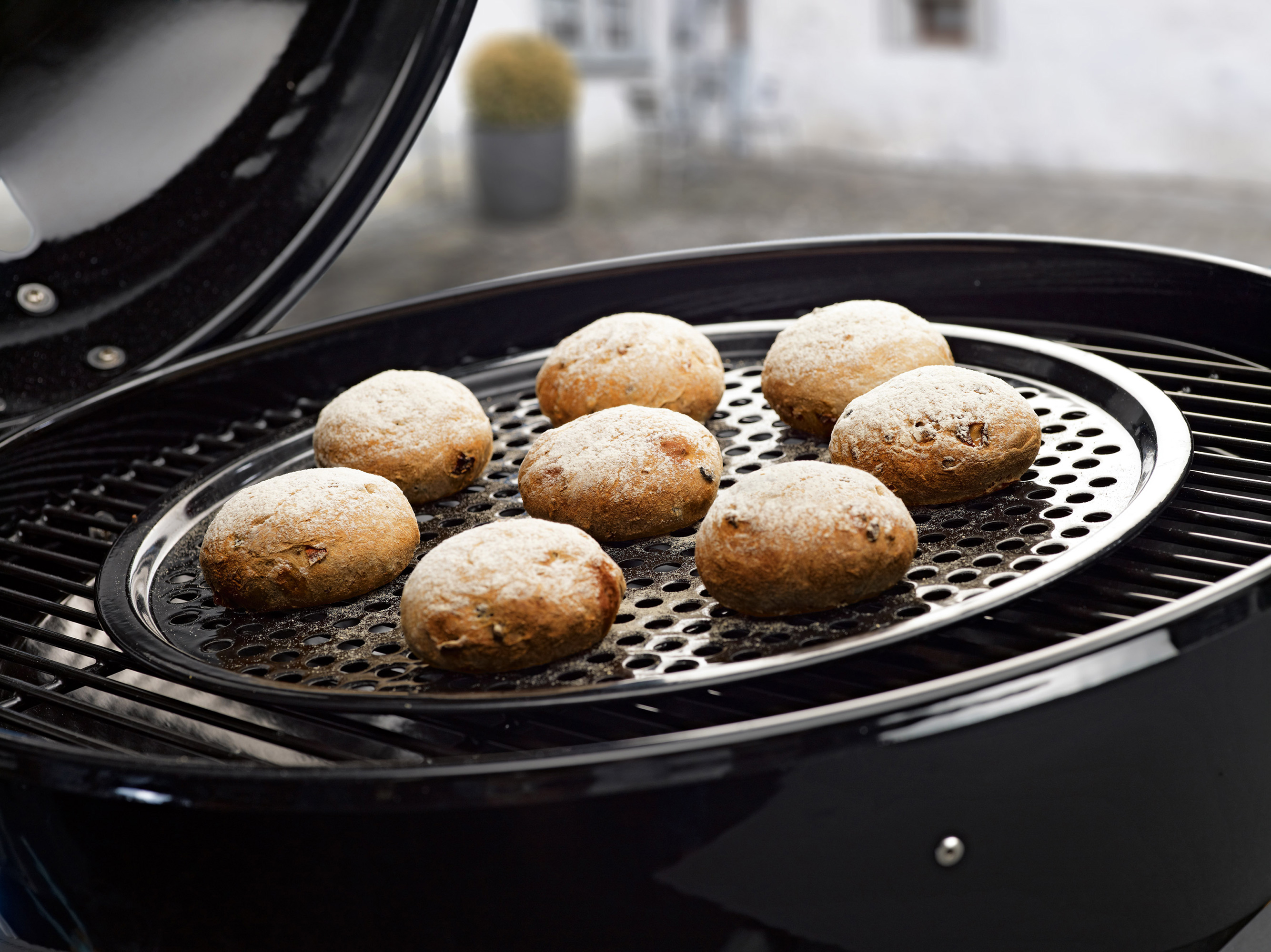 Das gelochte Backblech ist das perfekte Tool zum Backen von Pizza und Broten sowie für die Zubereitung von Fingerfood, Gemüse und anderem kleinteiligem Grillgut. die porzellanemaillierte Oberfläche bietet eine gute Antihaftbeschichtung und lässt sich besonders leicht reinigen. Das Lochblech passt in alle 480er und 570er Kugelgrills.