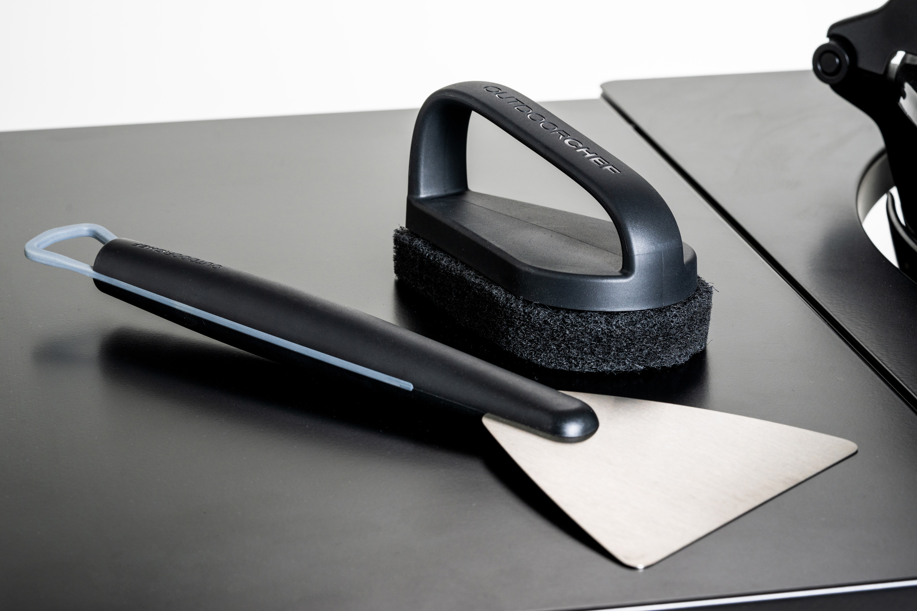Das Set enthält 2 Tools für eine einfache und gründliche Reinigung von Planchas und emaillierten Grillplatten mit glatter Oberfläche. Lösen sie zunächst mit dem großen Edelstahl-Schaber die Verkrustungen auf der Oberfläche und nutzen anschließend den schonenden Reinigungsschwamm zum Entfernen von Fett- und Marinadenresten. Die Klinge als auch der Schwamm sind austauschbar, so dass die Griffe mehrfach verwendet werden können.
