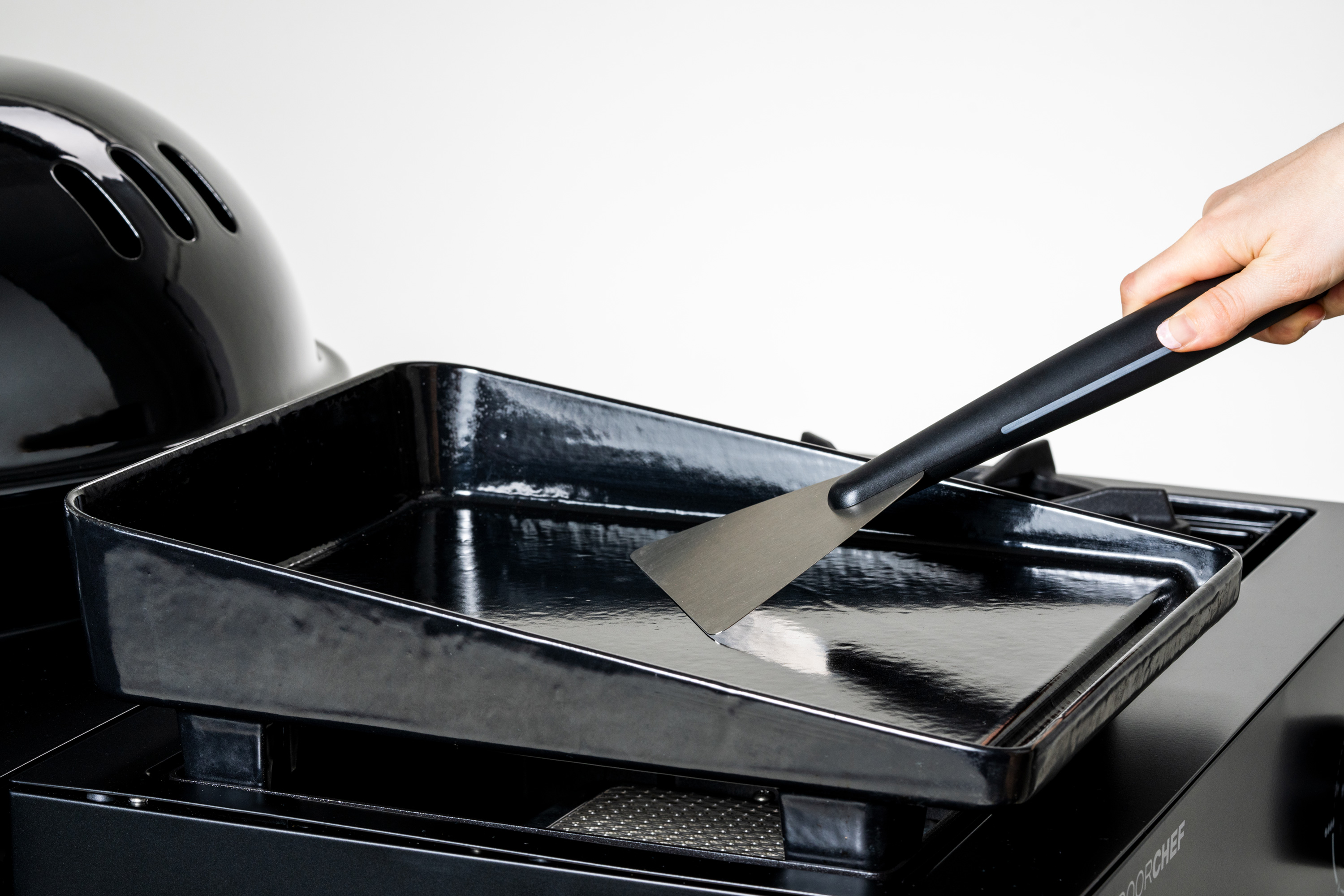 - Mit effektivem Edelstahl-Schaber gegen hartnäckige Verkrustungen