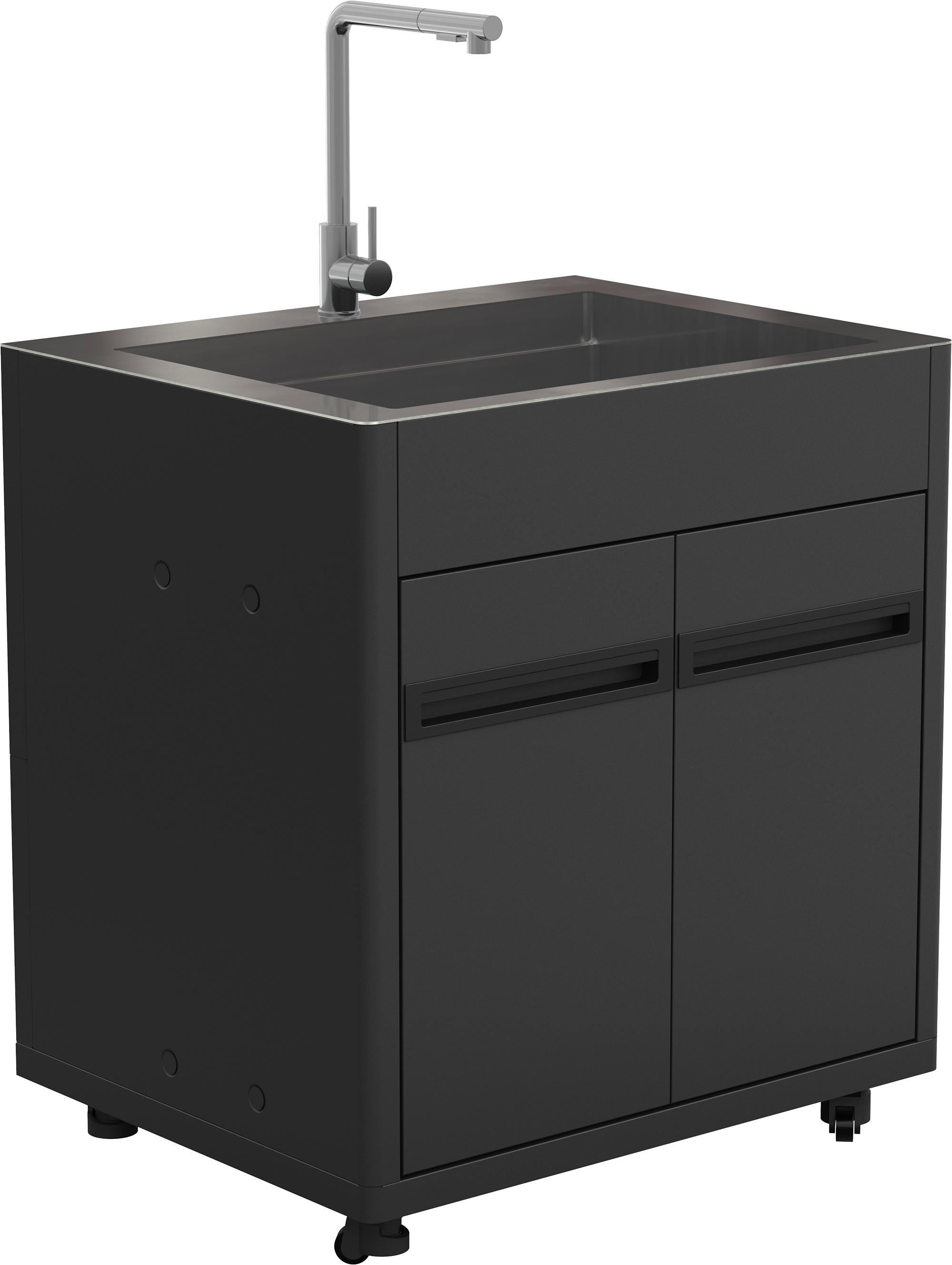 - Spülbeckenmodul mit vollintegriertem rechteckigen Edelstahlbecken