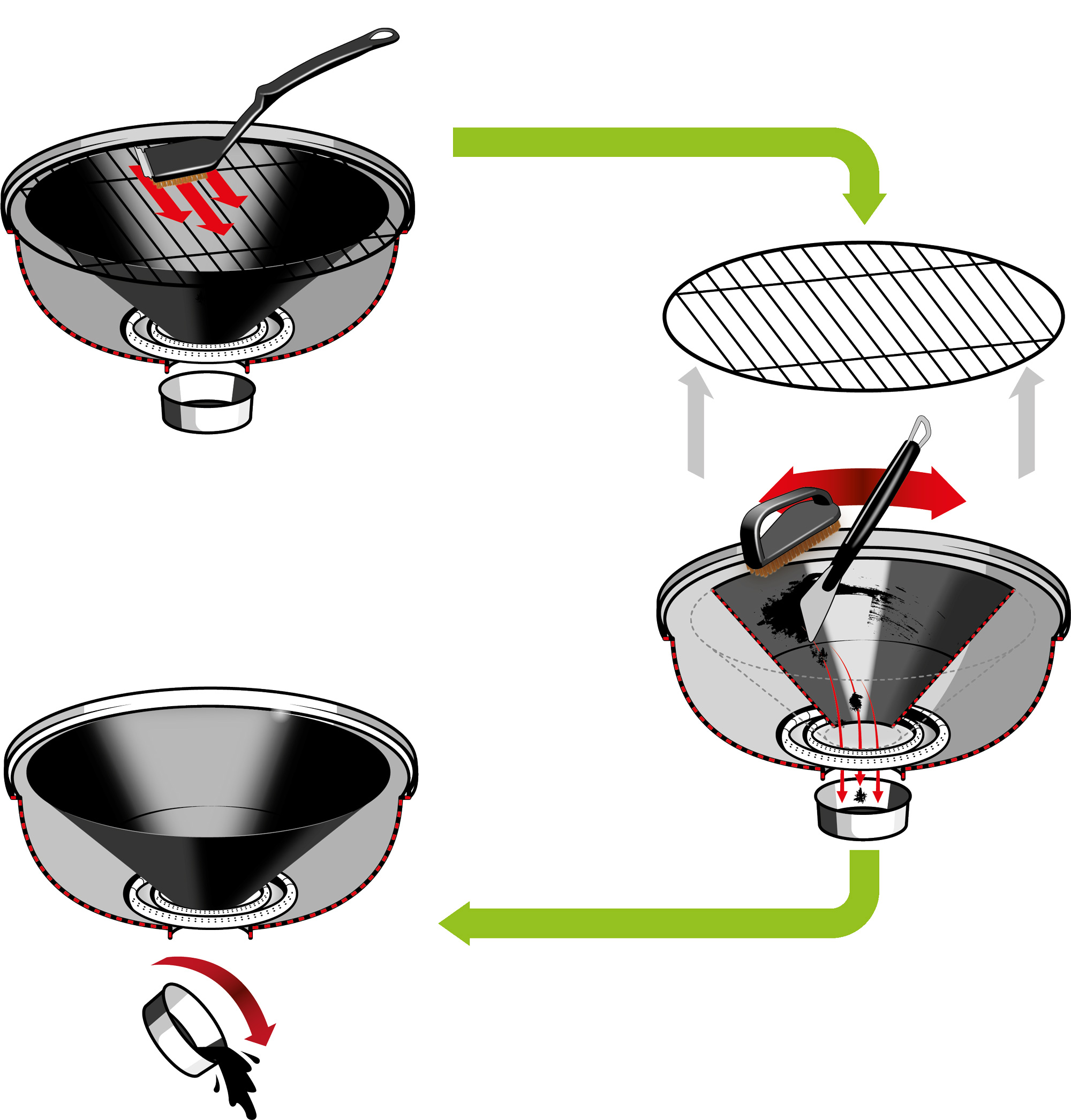 der gesamten Kugel durch komplett herausnehmbare Trichter und Fettauffangschale unterhalb der Kugel