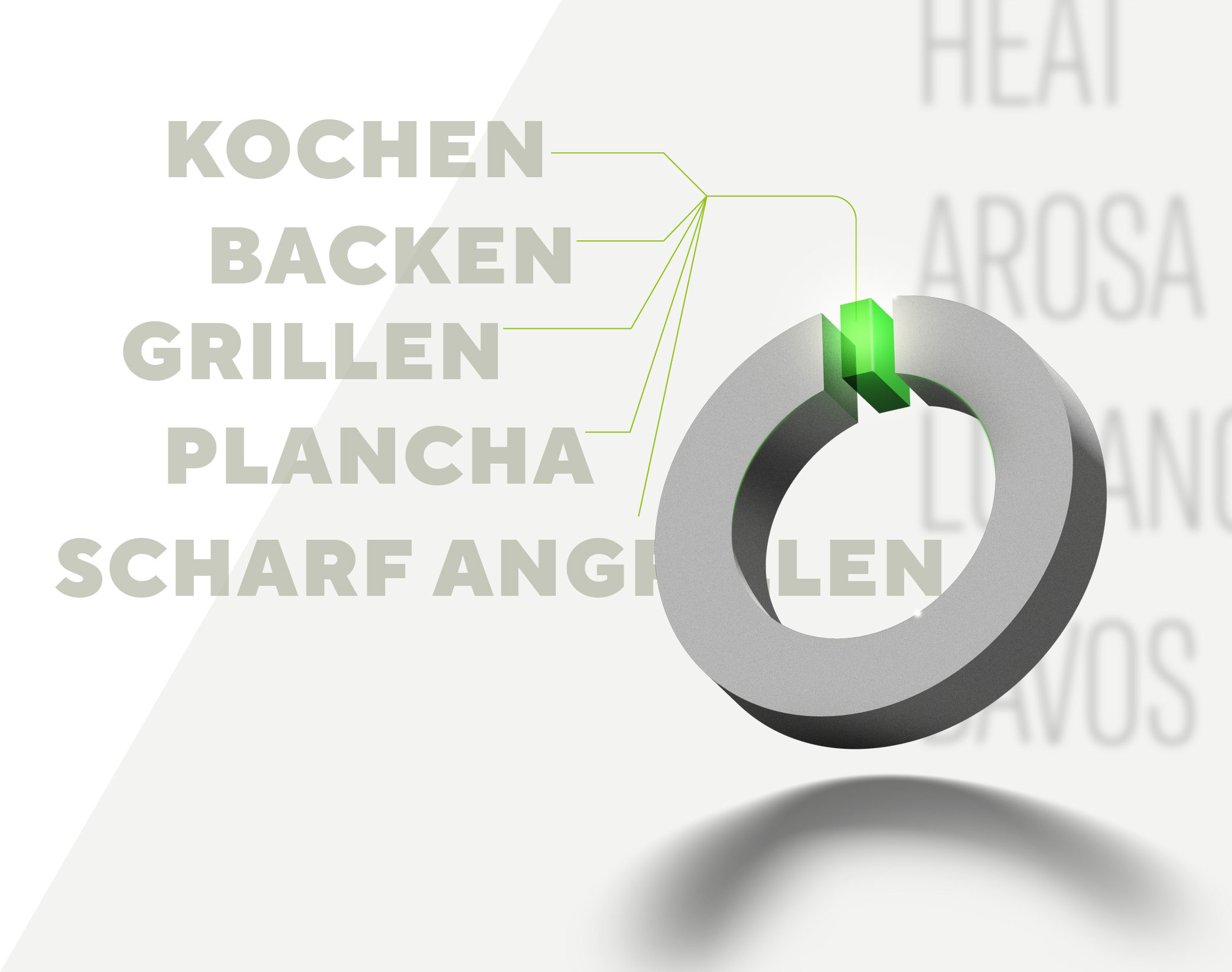 Lückenloses Temperaturspektrum von 80°C - 360°C mit 2 getrennt regelbaren Ringbrennern und Gourmet Burner Technologie