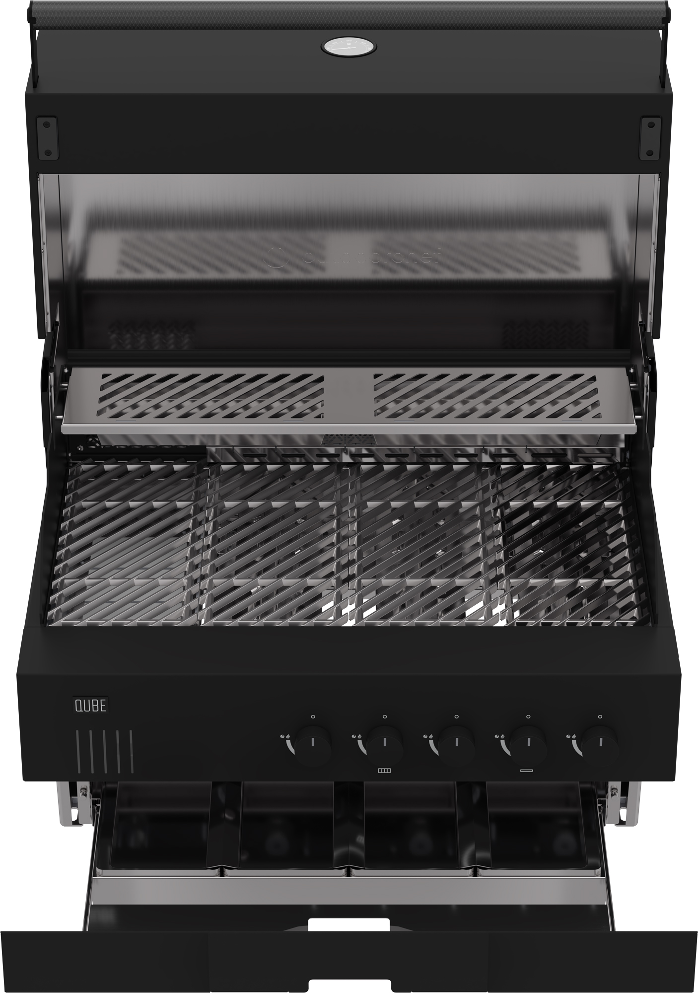 Der QUBE Design-Einbaugrill X-415 H Black ist die perfekte Kombination aus Leistung, Design und Langlebigkeit. Drei Edelstahl Gussbrenner, eine Blazing-Zone mit bis über 800 °C und ein Heckbrenner sorgen für maximale Vielseitigkeit und perfekte Grillergebnisse. Der Infrarotbrenner der Blazing Zone ist direkt in die Grillfläche integriert und bietet hier optimale Voraussetzungen für satte Brandings und köstliche Röstaromen. Hochwertiger Edelstahl, massive Gussroste und eine Soft-Close-Schublade für die separaten Fettauffangschalen garantieren nicht nur robuste Qualität sondern auch eine besonders einfache Reinigung. Smarte Highlights wie die 5-farbige Ambientebeleuchtung und der Betrieb über eine integrierte Powerbank machen den Grill besonders komfortabel. Ein echtes Premium-Gerät für alle, die beim Grillen keine Kompromisse eingehen wollen.